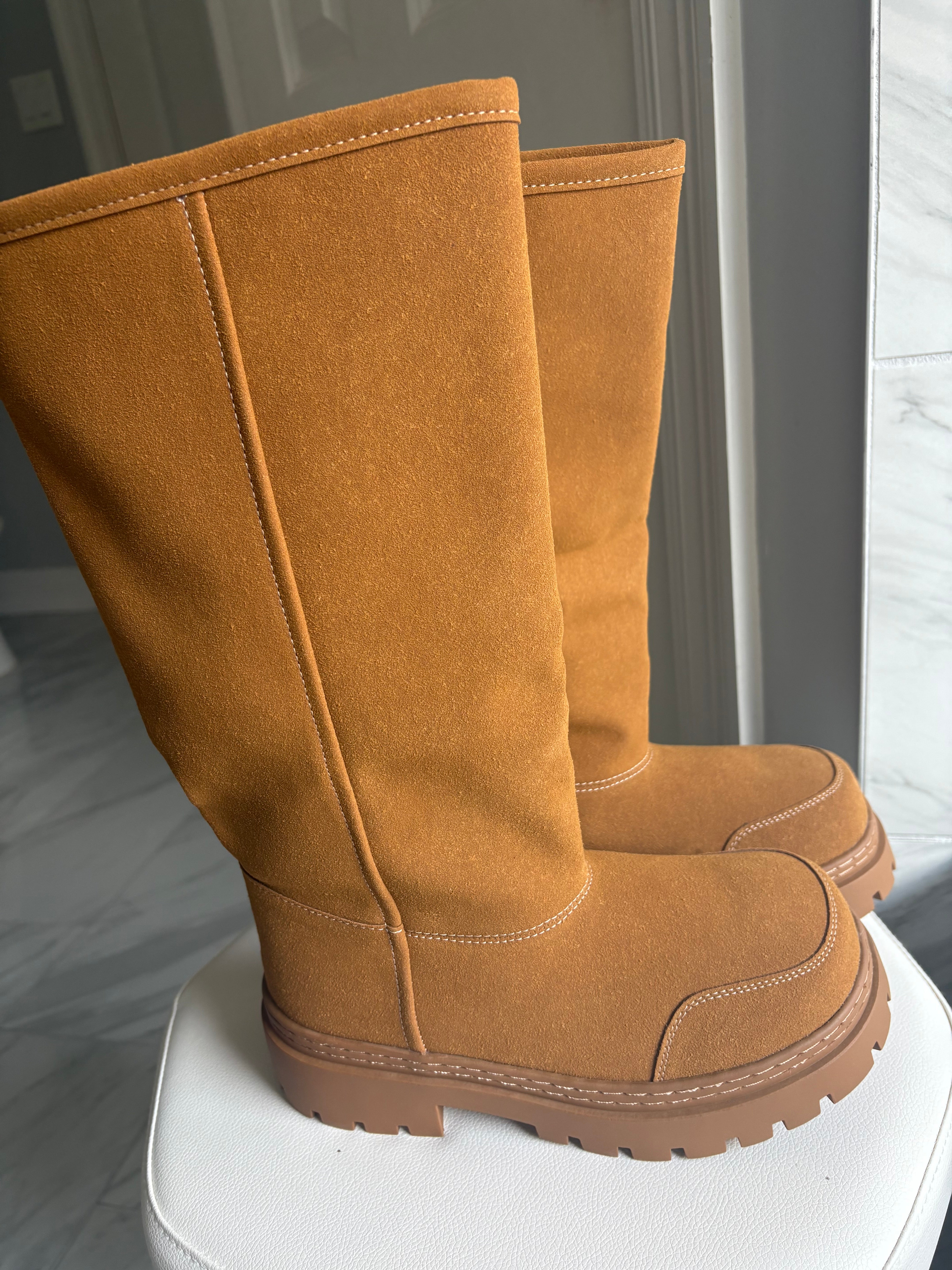 Create an Account LoginCamel colored chunky boots, run true to size.
